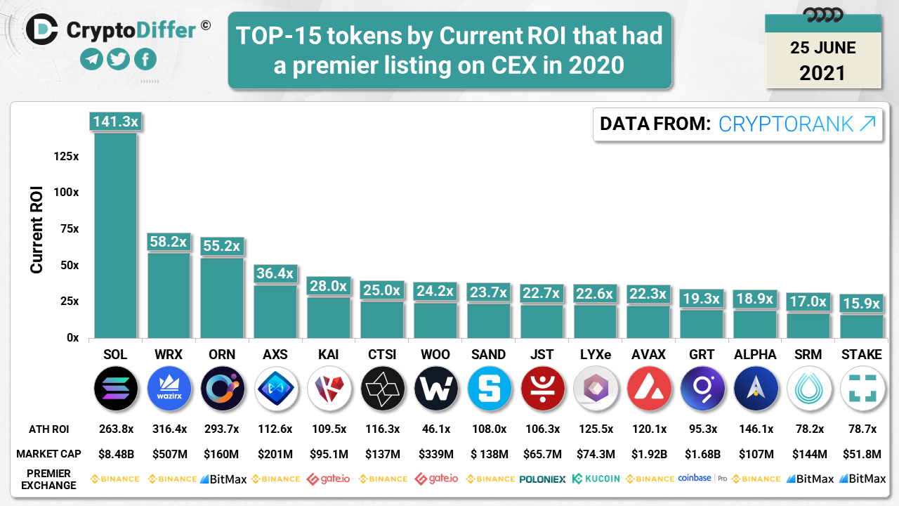 ββTOP-15 tokens by Current ROI that had a premier listing on CEX in 2020
