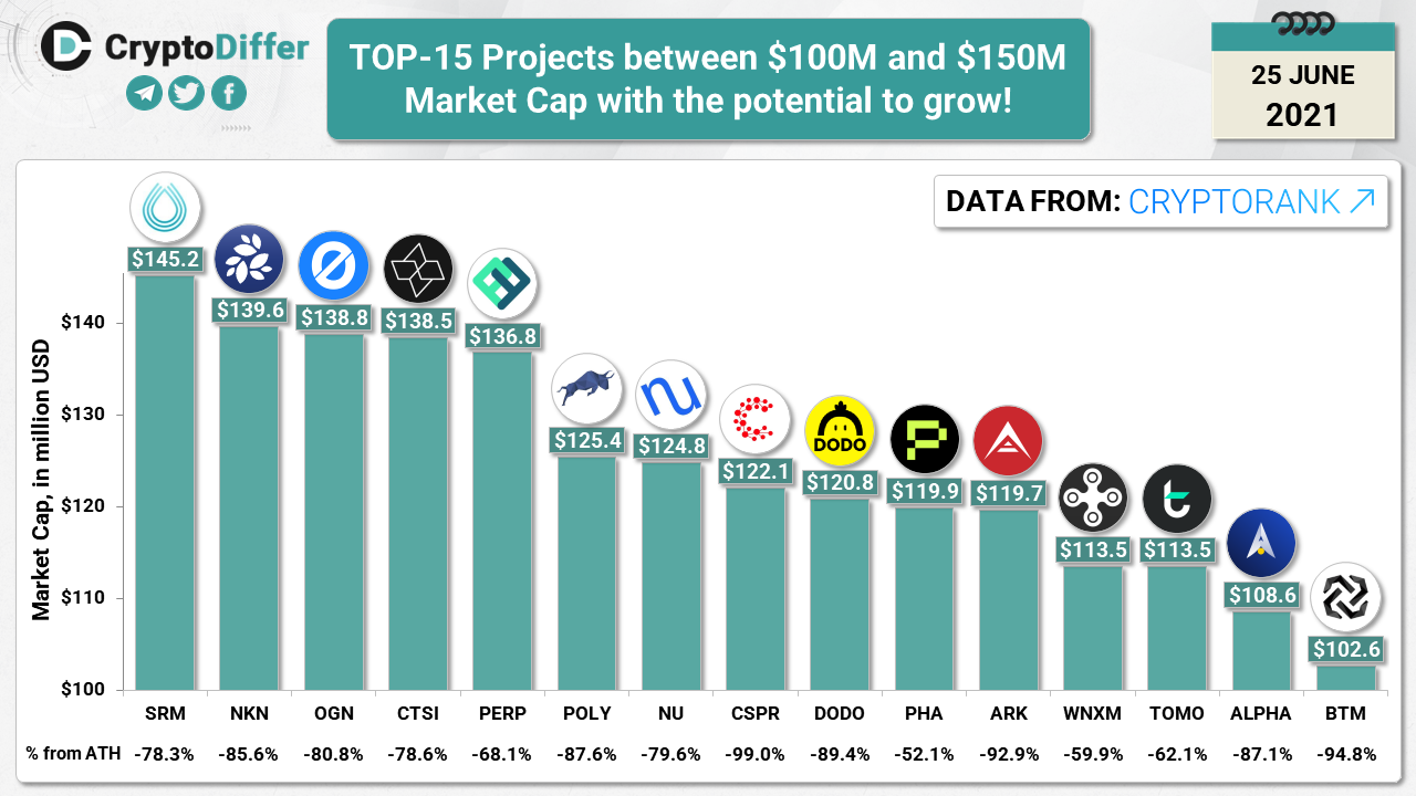 ββTOP-15 Projects between $100M and $150M Market Cap with the potential to grow!