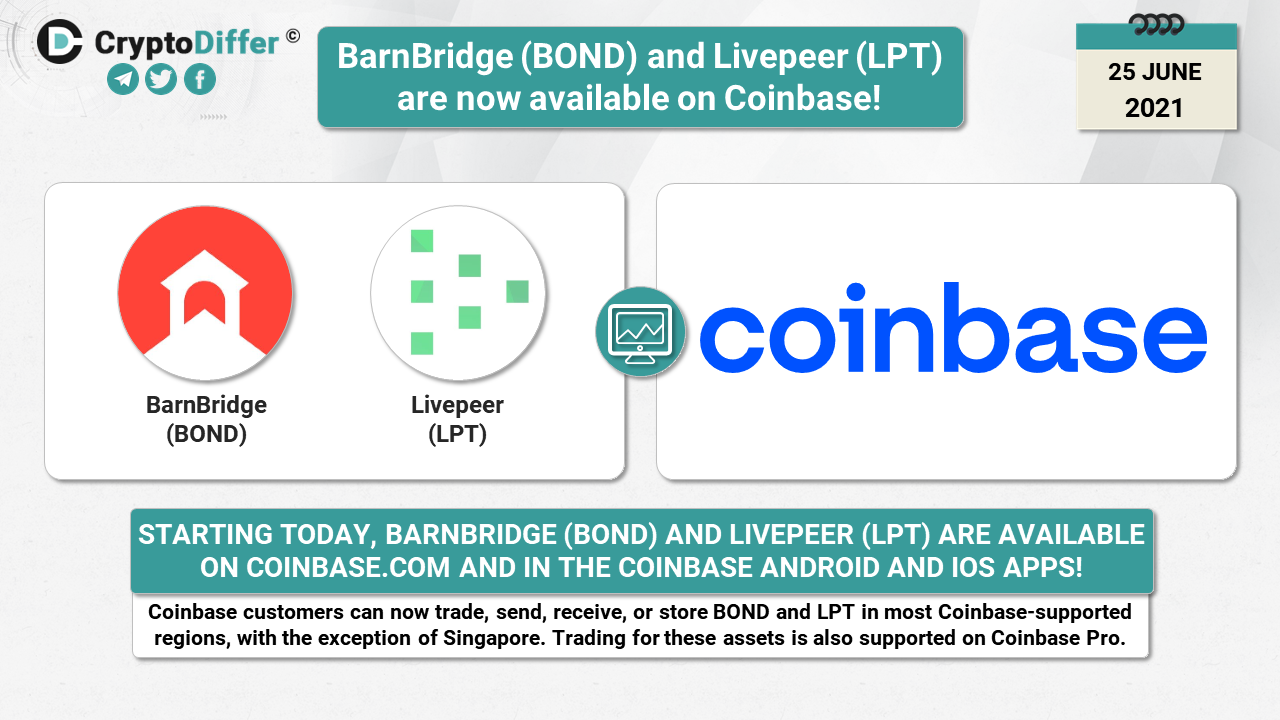 Starting today, BarnBridge (BOND) and Livepeer (LPT) are available on Coinbase.com and in the Coinbase Android and iOS apps. Trading for these assets is also supported on Coinbase Pro.
