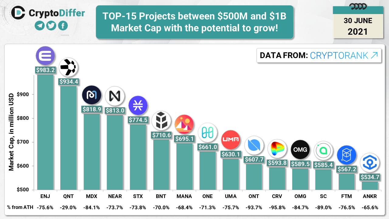 ββTOP-15 Projects between $500M and $1B Market Cap with the potential to grow!
