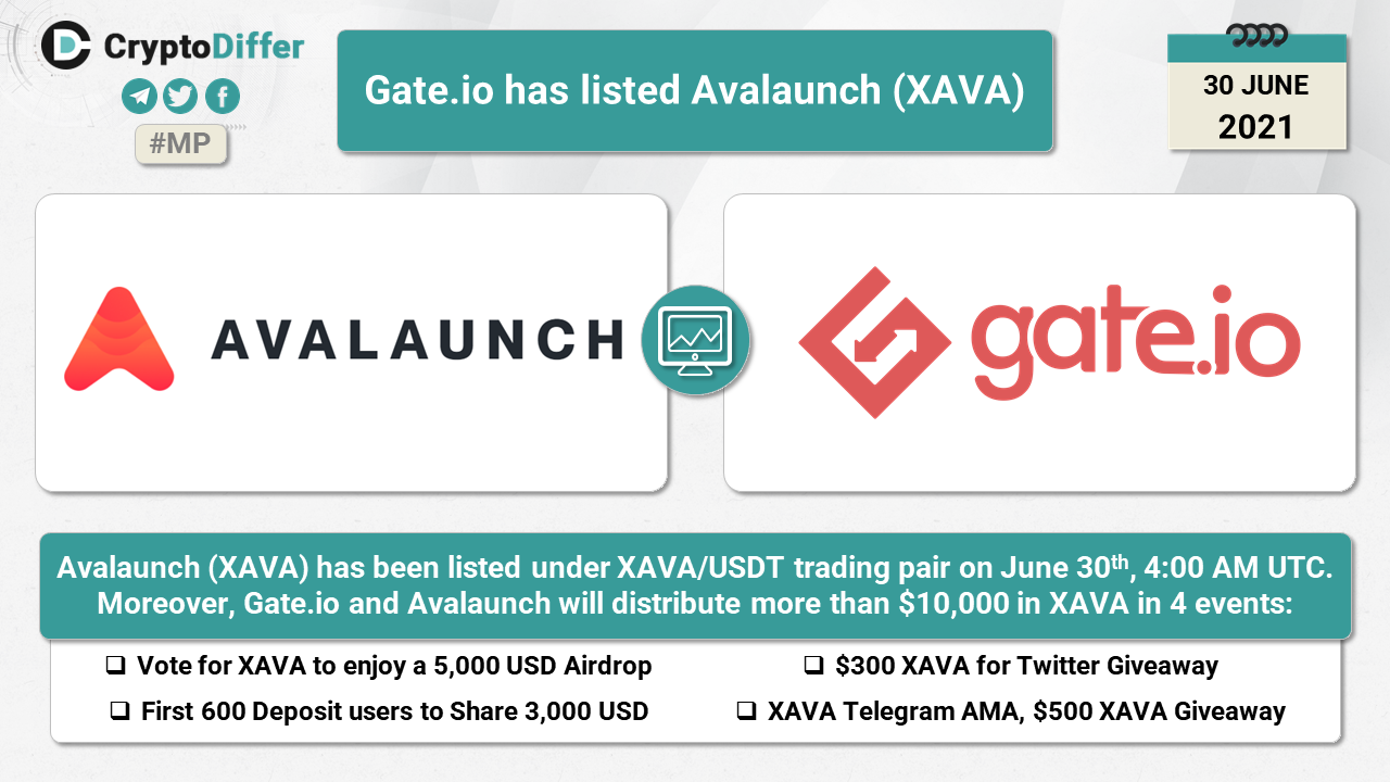 Avalaunch (XAVA) has been listed under XAVA/USDT trading pair on June 30th, 4:00 AM UTC. Moreover, Gate and Avalaunch will distribute more than $10,000 in XAVA in 4 events.