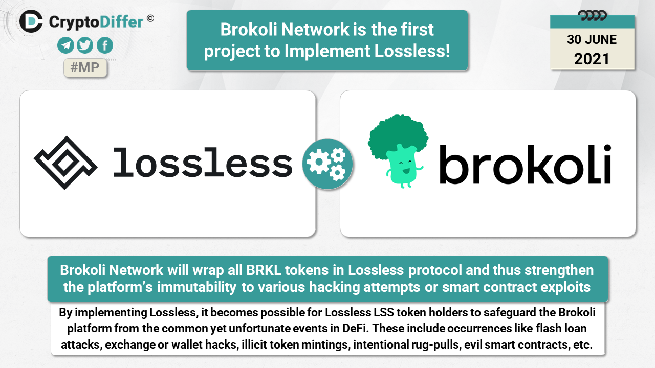 Brokoli Network will wrap all BRKL tokens in Lossless protocol and thus strengthen the platformβs immutability to various hacking attempts or smart contract exploits.
