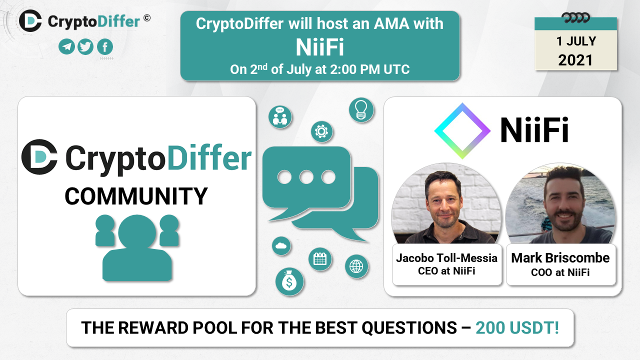 βββοΈDear community, CryptoDiffer will hold an AMA with NiiFi on the 2nd of July at 2:00 PM UTC in the CryptoDiffer Telegram Chat!