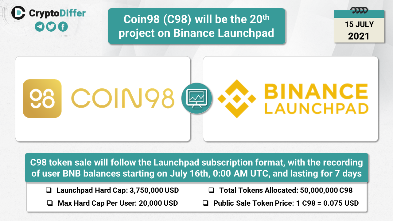 C98 token sale will follow the Launchpad subscription format, with the recording of user BNB balances starting on July 16th, 0:00 AM UTC, and lasting for 7 days.
