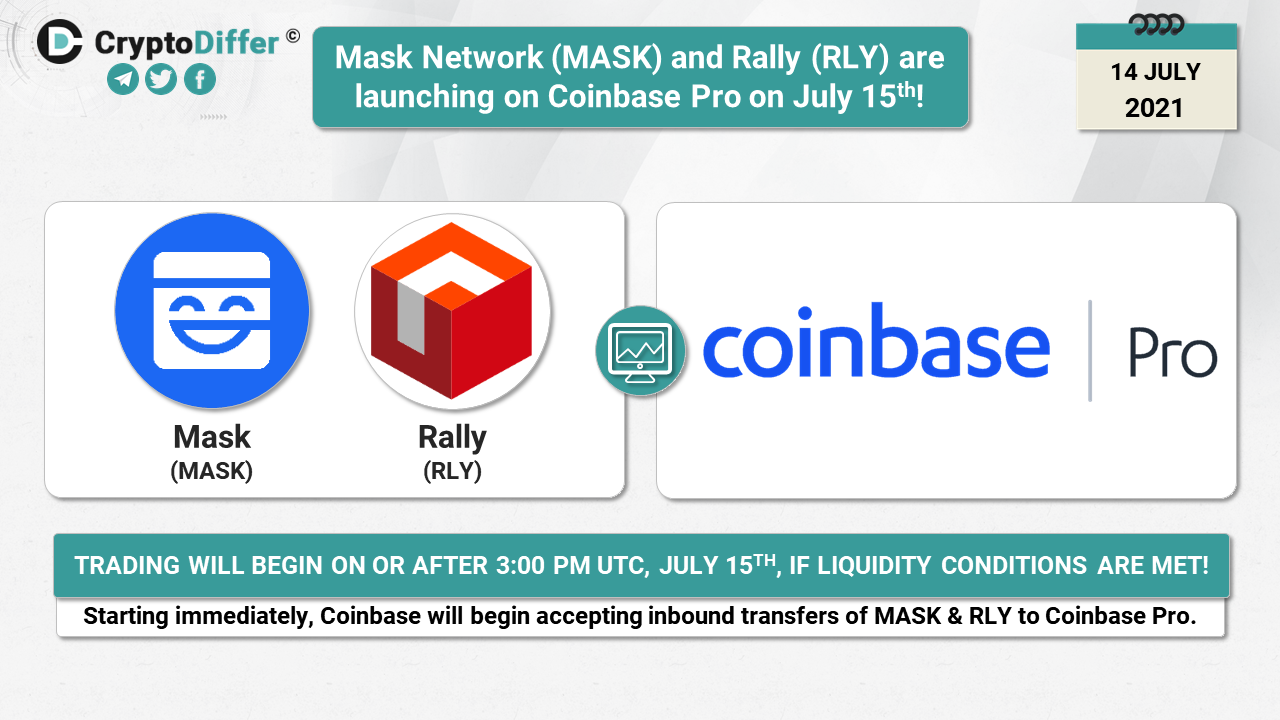 ββMask (MASK) & Rally (RLY) are launching on Coinbase Pro on July 15th!