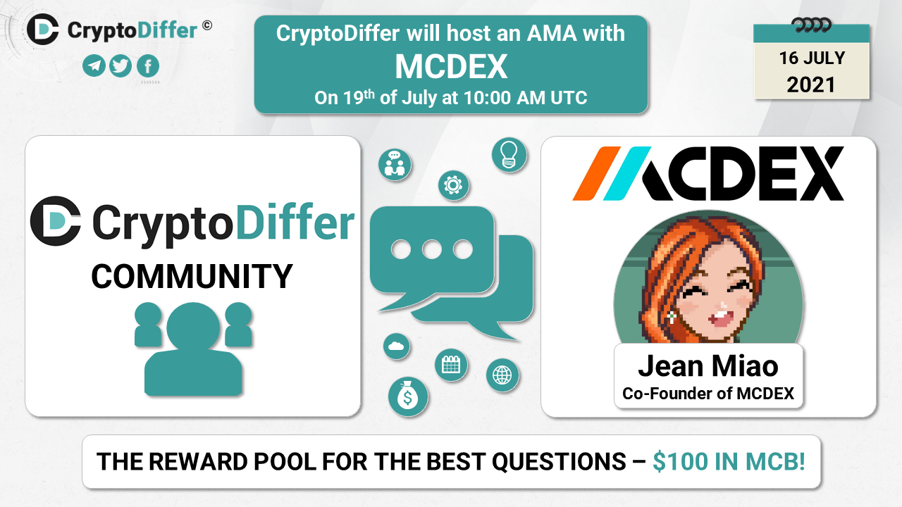 βββοΈDear community, CryptoDiffer will hold an AMA with MCDEX on the 19th of July at 10:00 AM UTC in the CryptoDiffer Telegram Chat!