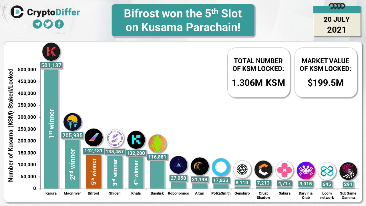 Kusama first batch of parachain bidding has ended with 5th parachain won by Bifrost.
