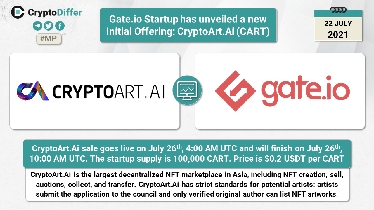 Gate.io Startup has unveiled a new Initial Offering: CryptoArt.Ai (CART)