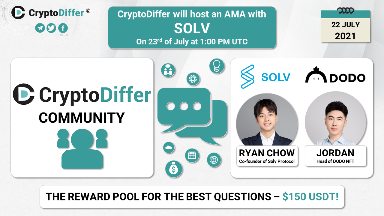 ❗️Dear community, CryptoDiffer will hold an AMA with Solv on the 23rd of July at 1:00 PM UTC in the CryptoDiffer Telegram Chat!