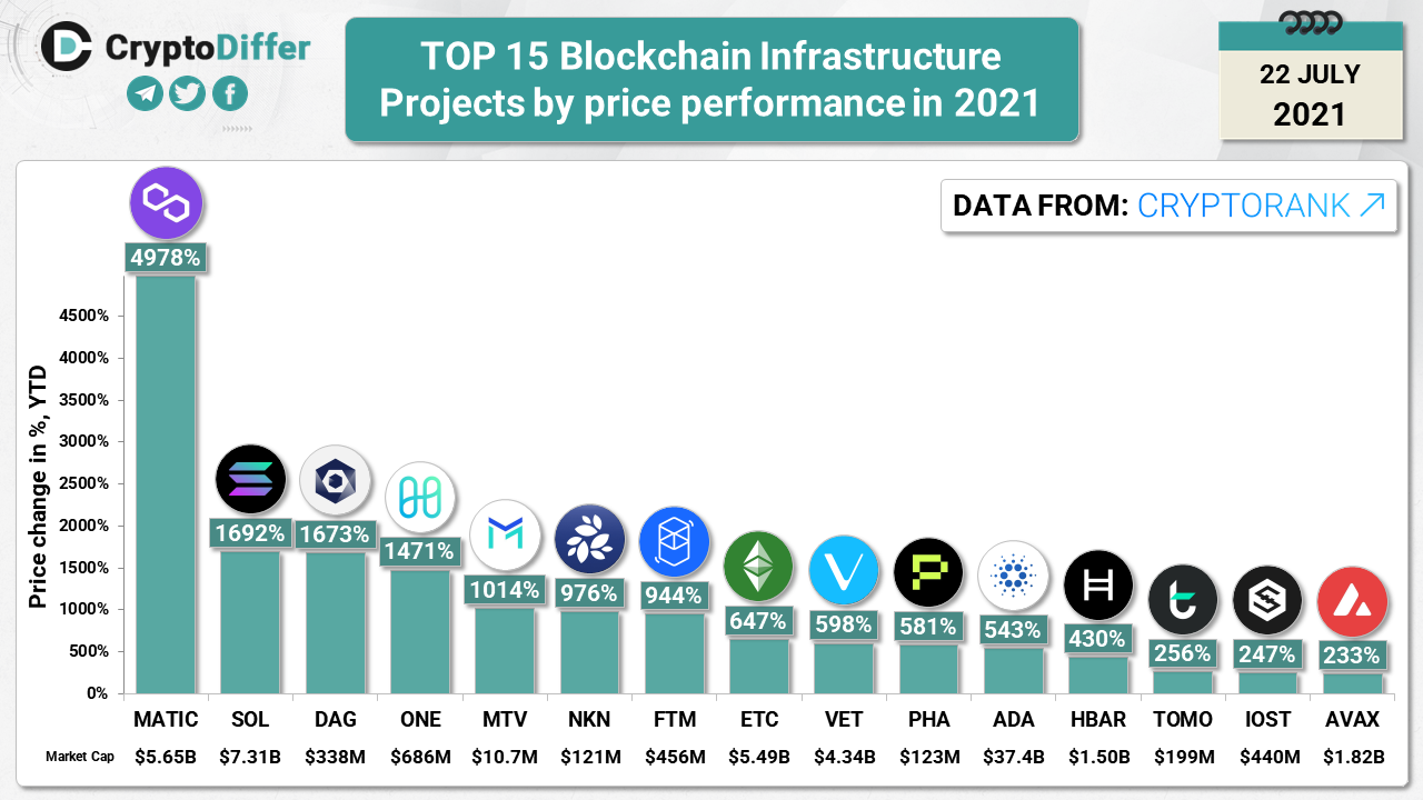 TOP 15 Blockchain Infrastructure Projects by price performance in 2021