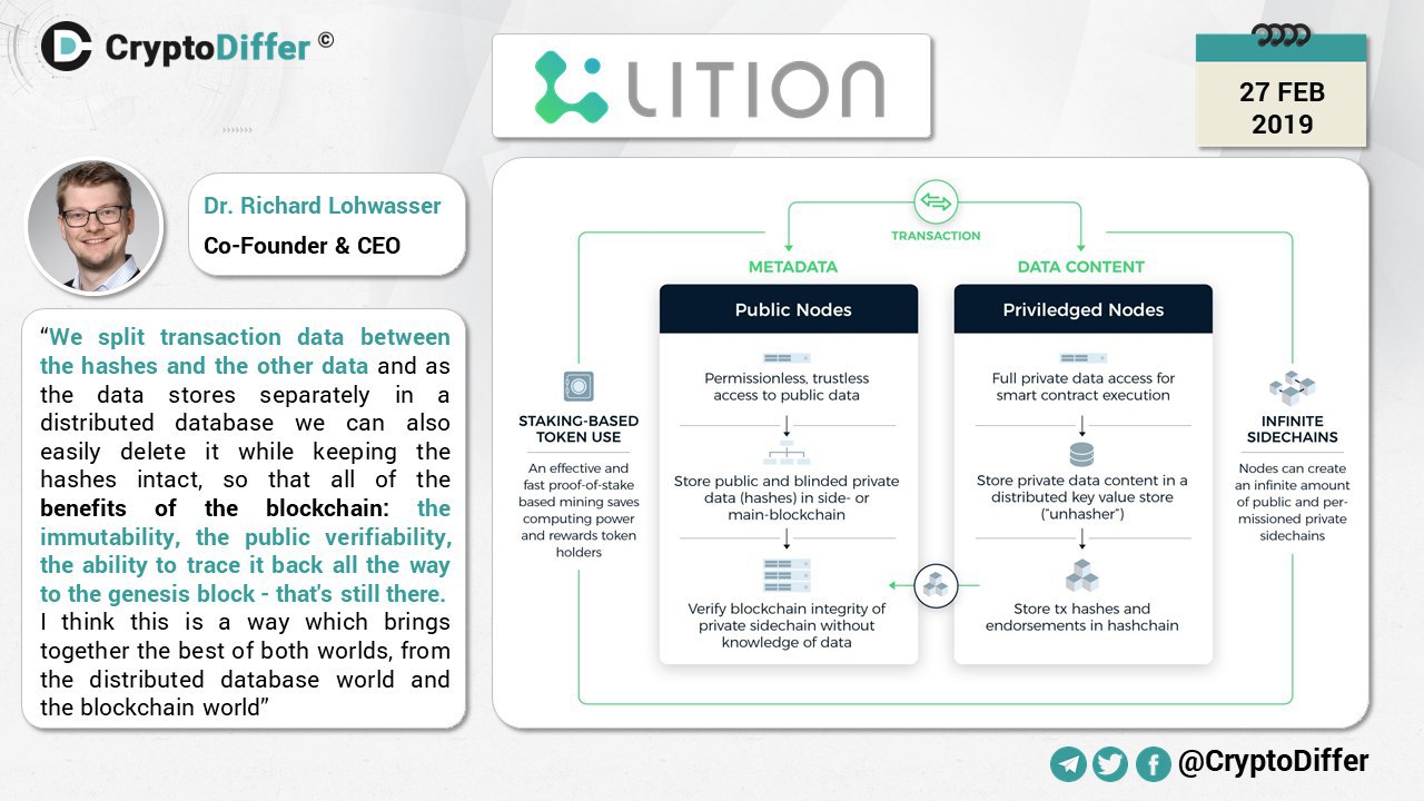 Lition is developing a scalable public-private blockchain with deletable data features (GDPR complaint), made for commercial products.