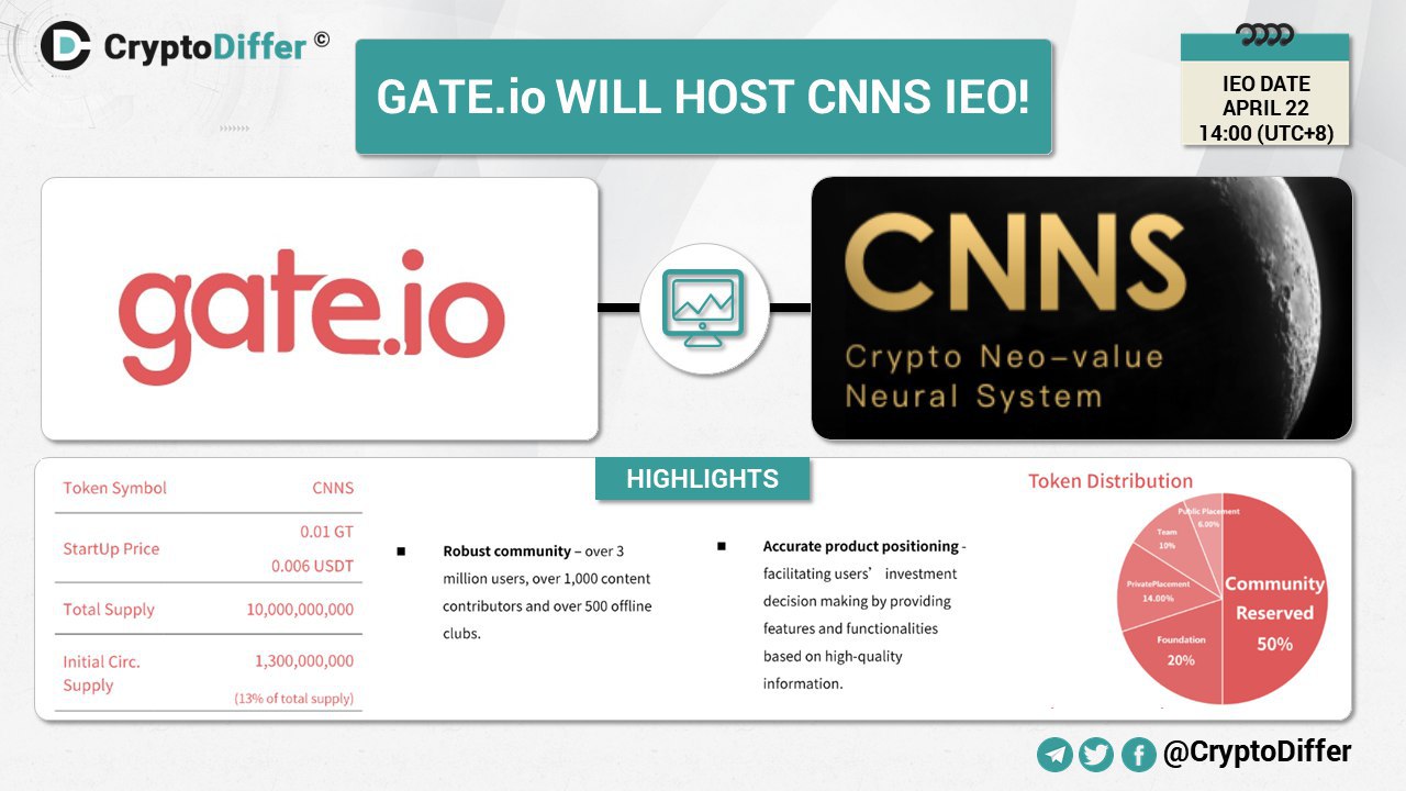 CNNS IEO will be held on 22th of April at 14:00 (UTC+8)