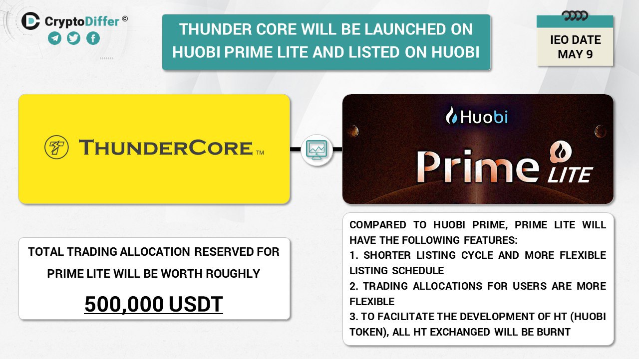 ββHuobi Global will launch Prime Lite and list ThunderCore (@Thunder_Official) on May 9, 2019