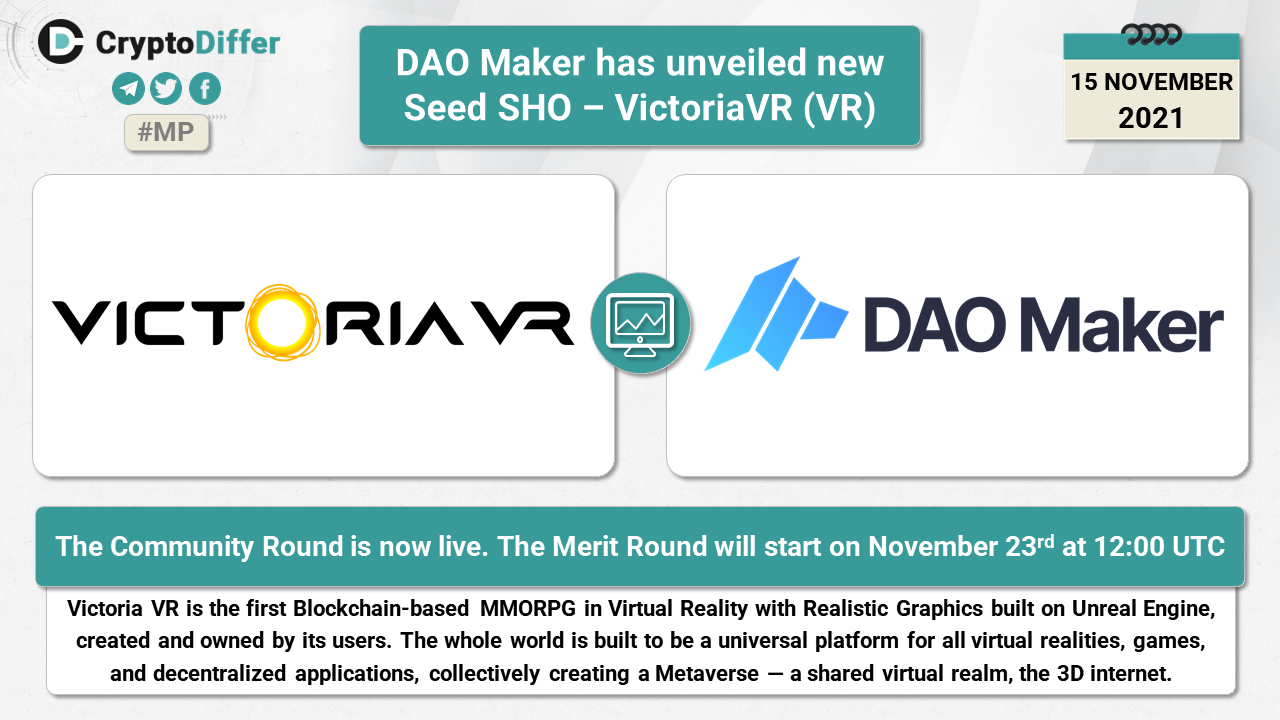 ββDAO Maker has unveiled new Seed SHO β VictoriaVR (VR)