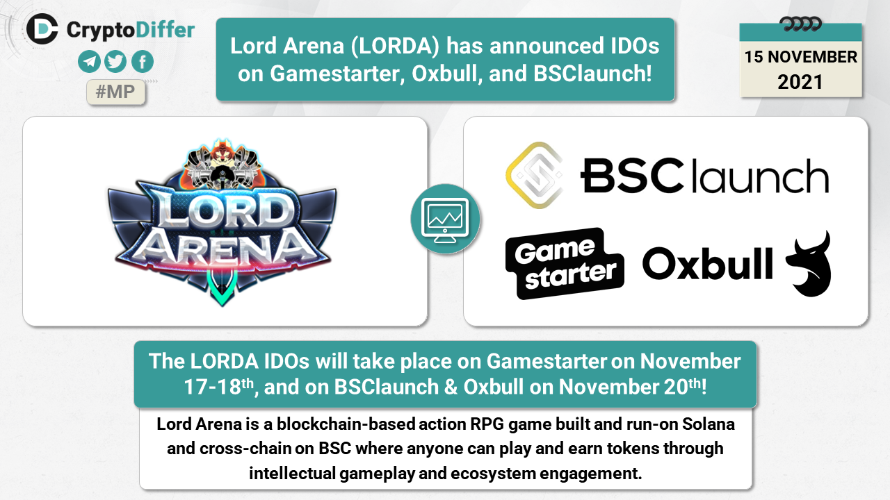 The LORDA IDOs will take place on Gamestarter on November 17-18th, and on BSClaunch & Oxbull on November 20th.