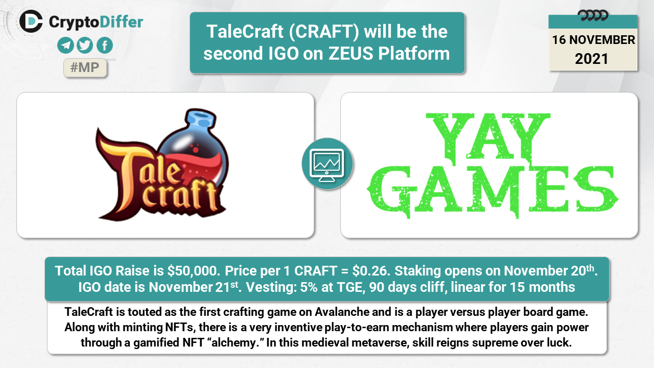 TaleCraft (CRAFT) will be the second IGO on ZEUS Platform