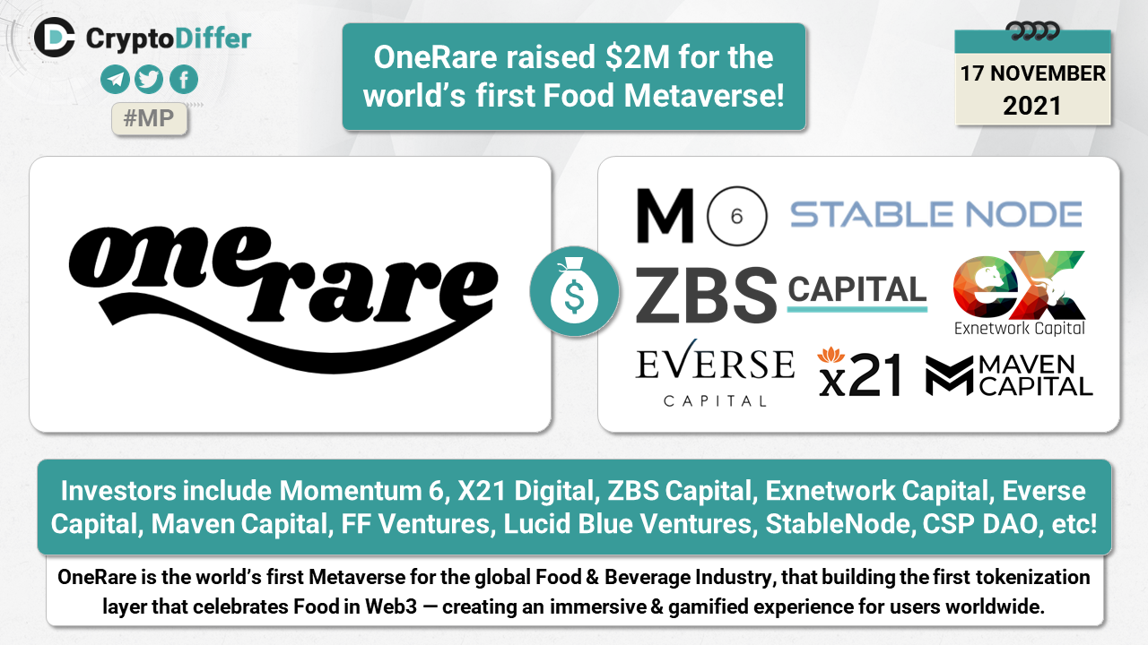 ββOneRare raised $2M for the worldβs first Food Metaverse!