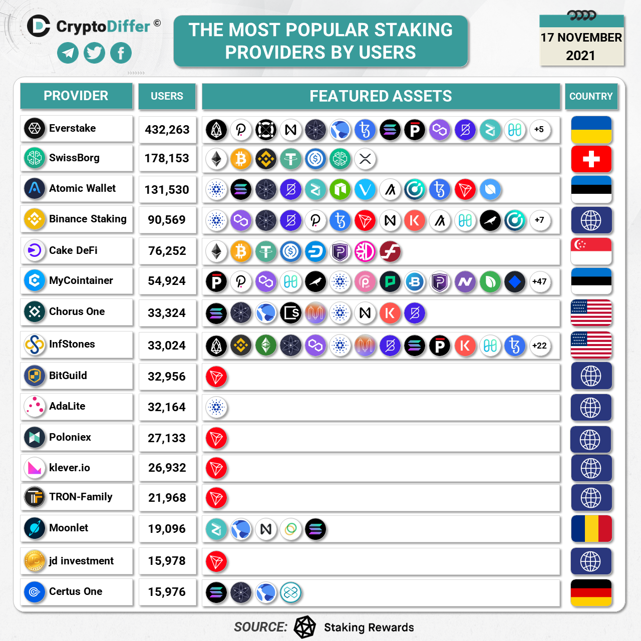 We have prepared the list of projects sorted by the USD value of the staked tokens. According to the list, top 5: Solana, Cardano, Polkadot, Ethereum, and Avalanche.