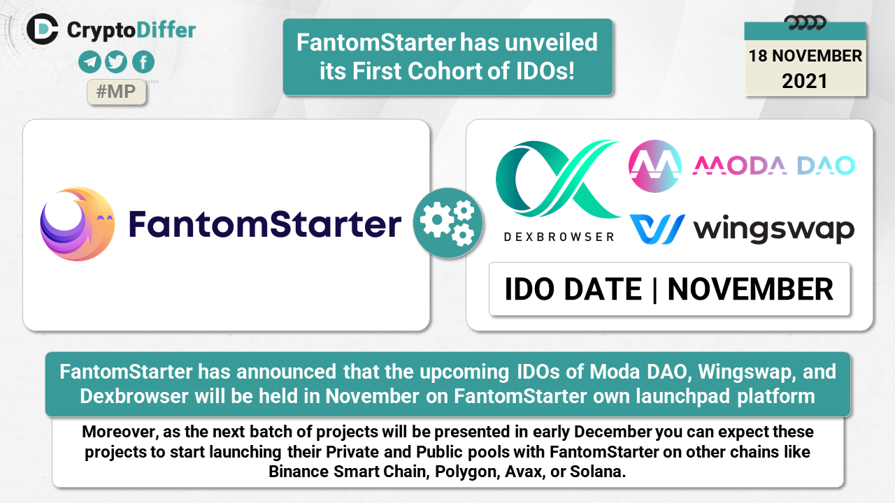 FantomStarter has announced that the upcoming IDOs of Moda DAO, Wingswap, and Dexbrowser will be held in November on FantomStarter own launchpad platform.
