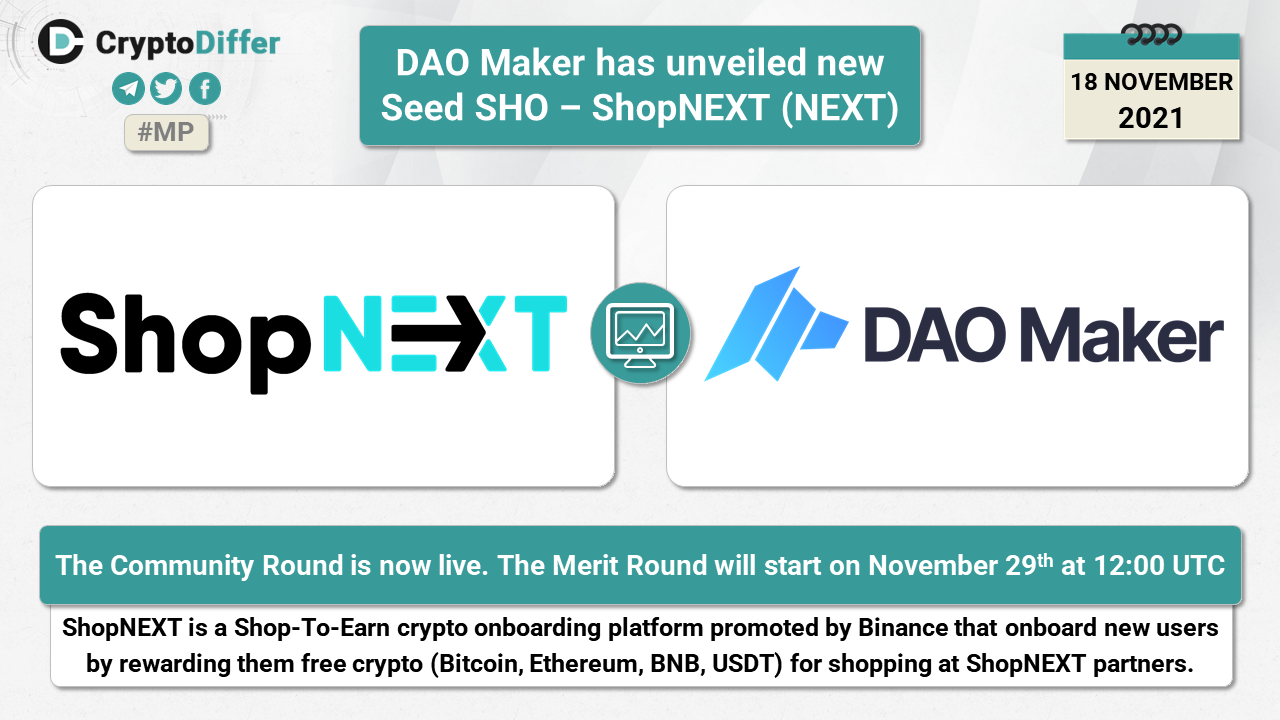 ββDAO Maker has unveiled new Seed SHO β ShopNEXT (NEXT)