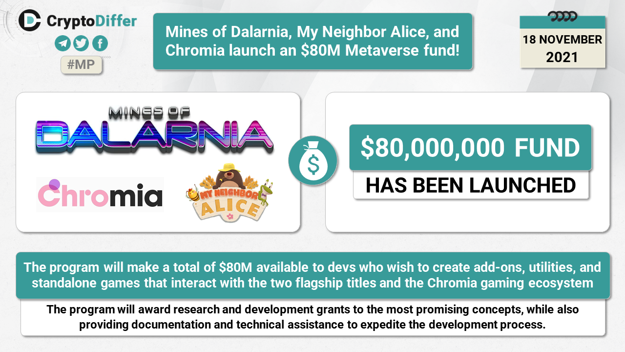 ββMines of Dalarnia, My Neighbor Alice, and Chromia launch an $80M Metaverse fund!
