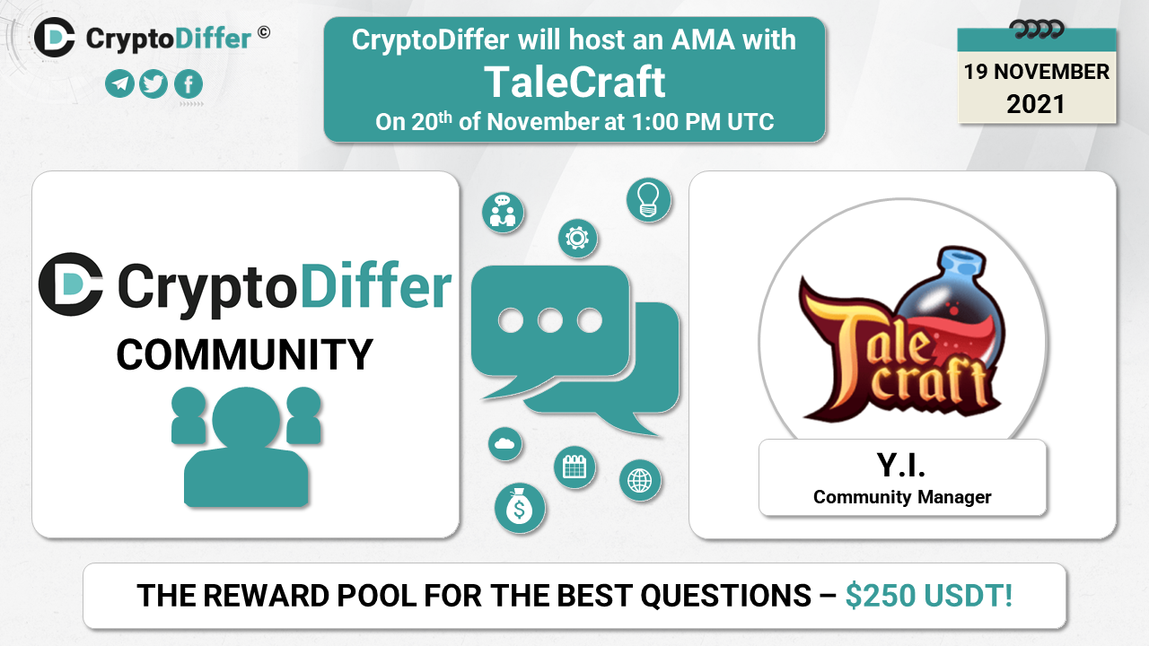 βββοΈDear community, CryptoDiffer will hold an AMA with TaleCraft on the 20th of November at 1:00 PM UTC in the CryptoDiffer Telegram Chat!