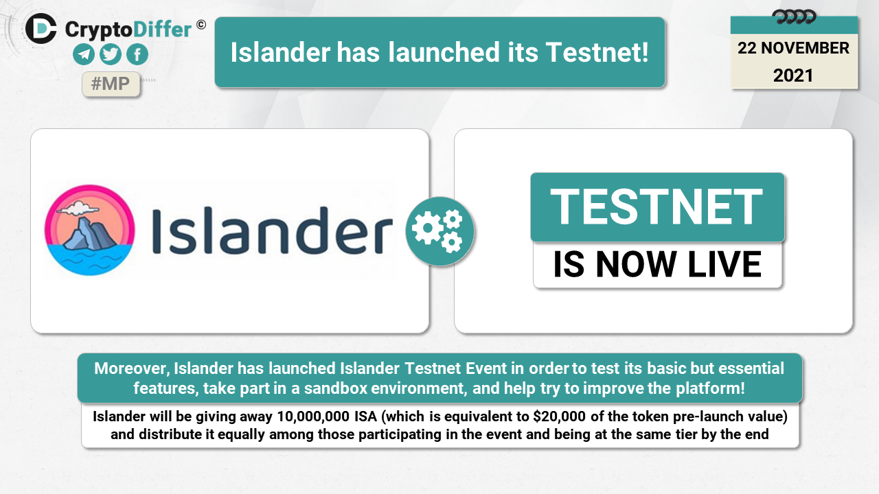 Moreover, Islander has launched Islander Testnet Event in order to test its basic but essential features, take part in a sandbox environment, and help try to improve the platform!