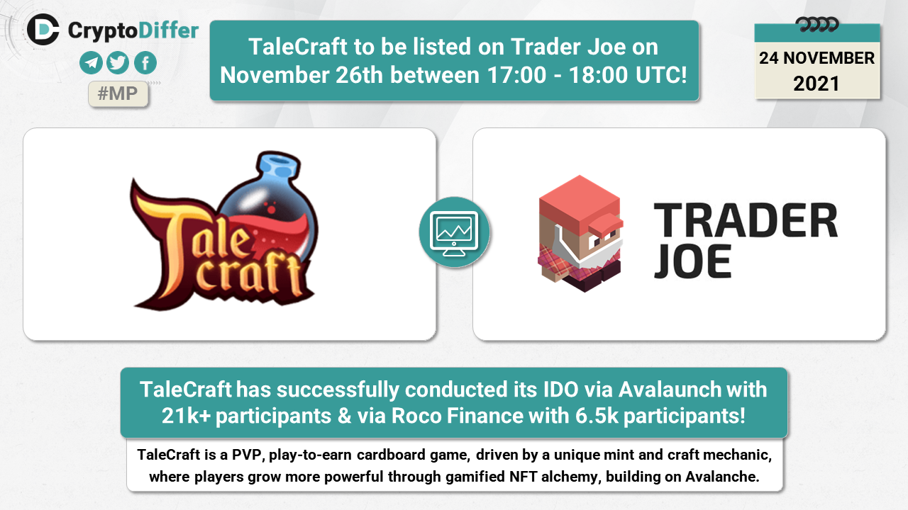 ββTaleCraft to be listed on Trader Joe on November 26th between 17:00 - 18:00 UTC!
