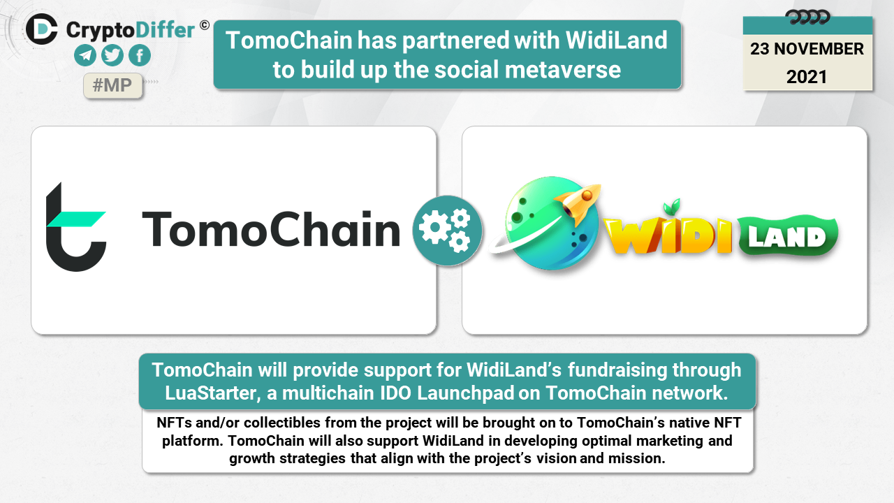 TomoChain will provide support for WidiLandβs fundraising through LuaStarter, a multichain IDO Launchpad on TomoChain network. TomoChain will also support WidiLand in developing optimal marketing and growth strategies that align with the projectβs vision and mission.