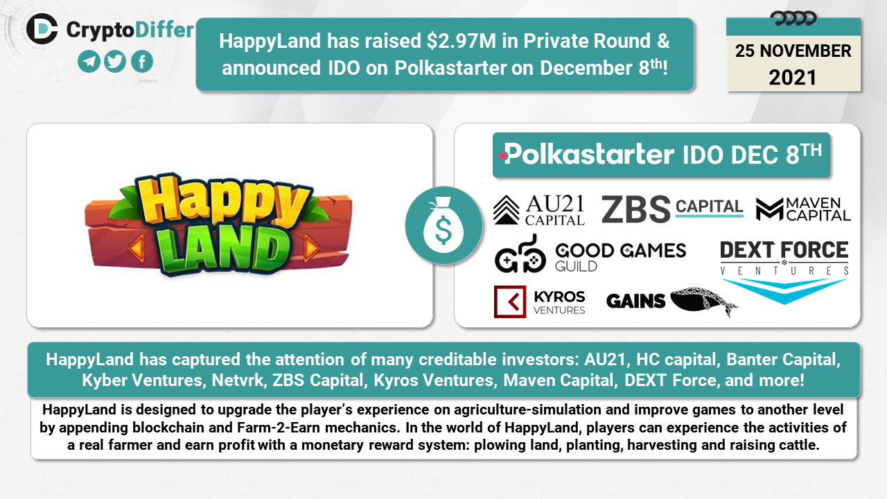 ββHappyLand has raised $2.97M in Private Round & announced IDO on Polkastarter on December 8th!