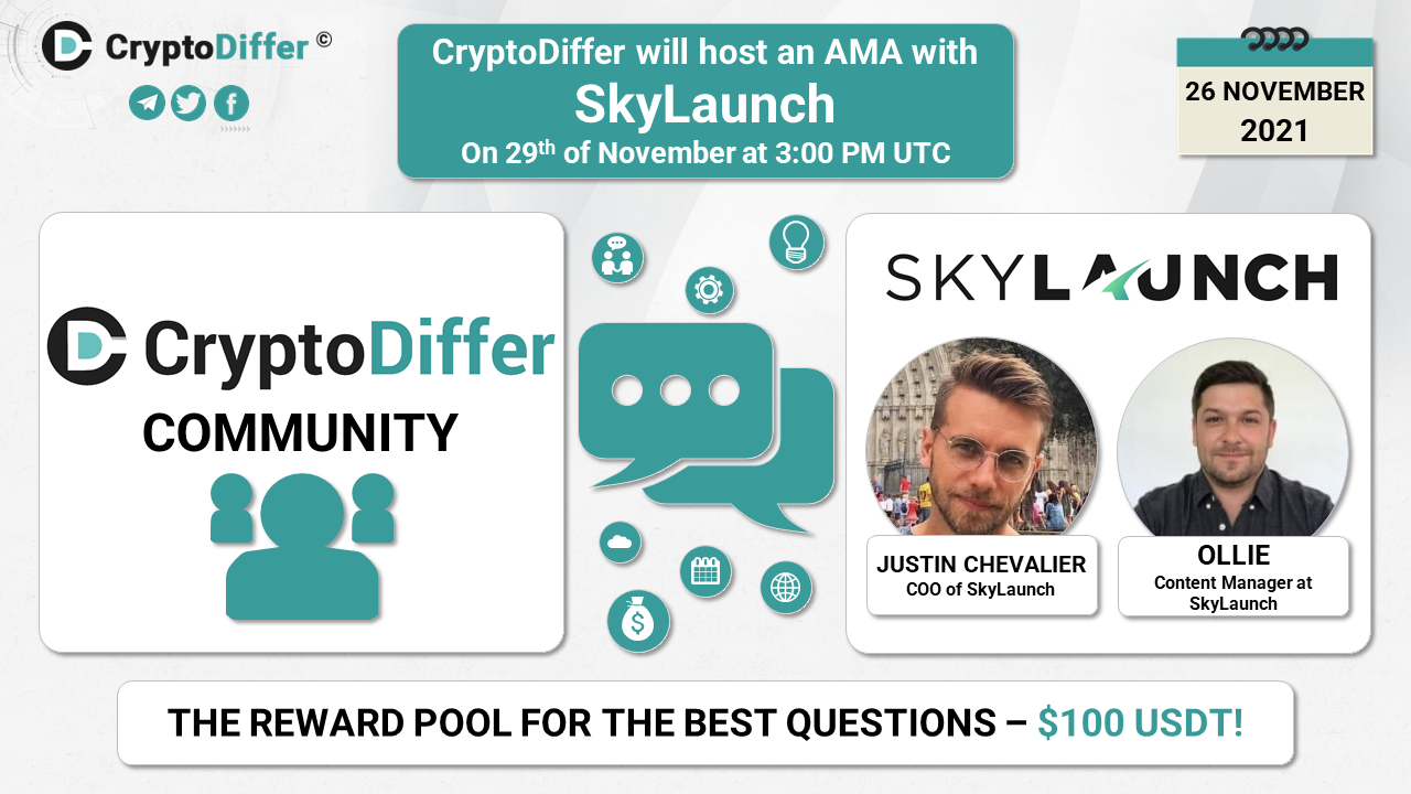 βββοΈDear community, CryptoDiffer will hold an AMA with SkyLaunch on the 29th of November at 3:00 PM UTC in the CryptoDiffer Telegram Chat!