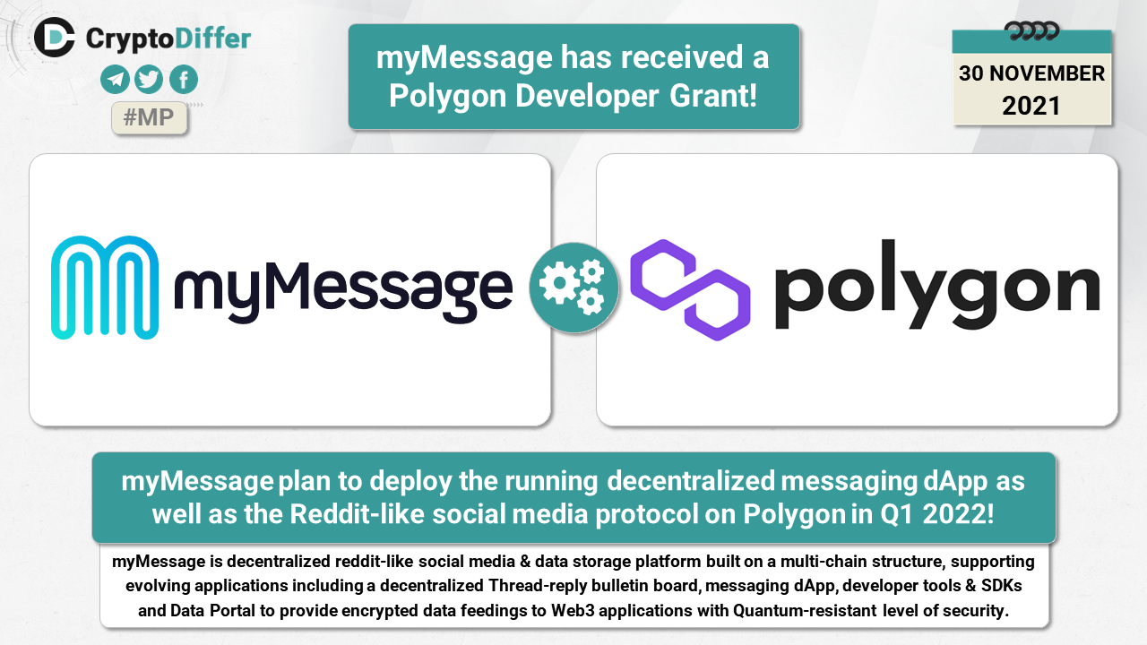 myMessage plan to deploy the running decentralized messaging dApp as well as the Reddit-like social media protocol on Polygon in Q1 2022.