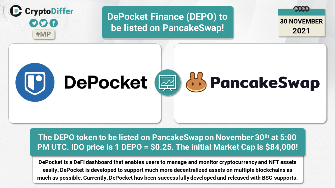 ββThe DePocket Finance (DEPO) to be listed on PancakeSwap on November 30th at 5:00 PM UTC!