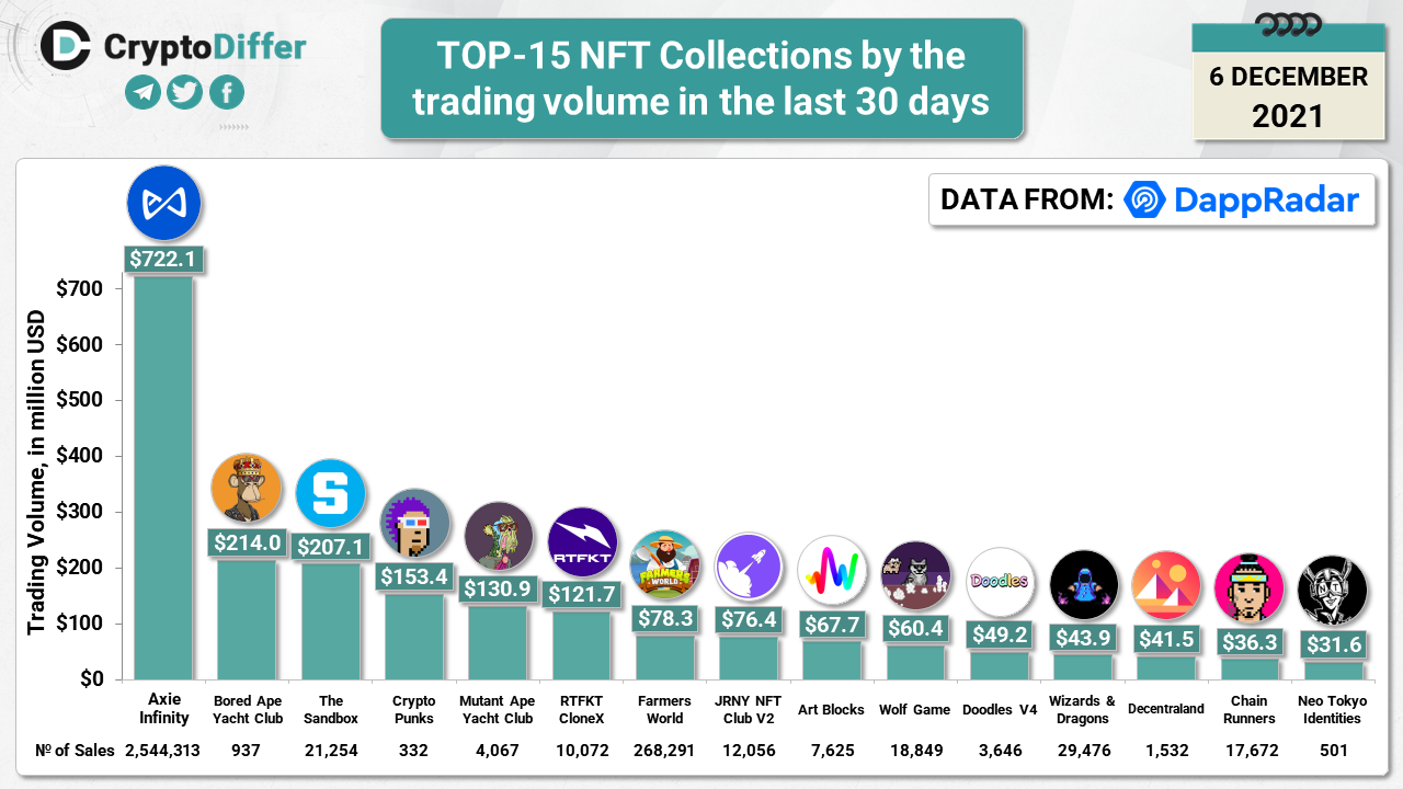 ββTOP-15 NFT Collections by the trading volume in the last 30 days