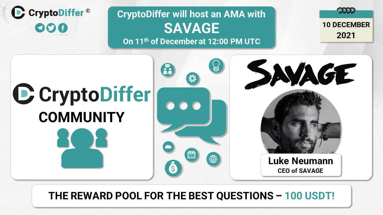 βββοΈDear community, CryptoDiffer will hold an AMA with SAVAGE on the 11th of December at 12:00 PM UTC in the CryptoDiffer Telegram Chat!