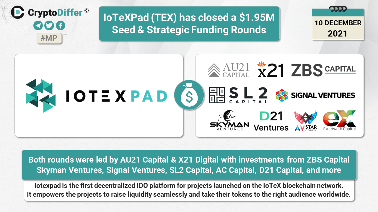 ββIoTeXPad (TEX) has closed a $1.95M Seed & Strategic Funding Rounds