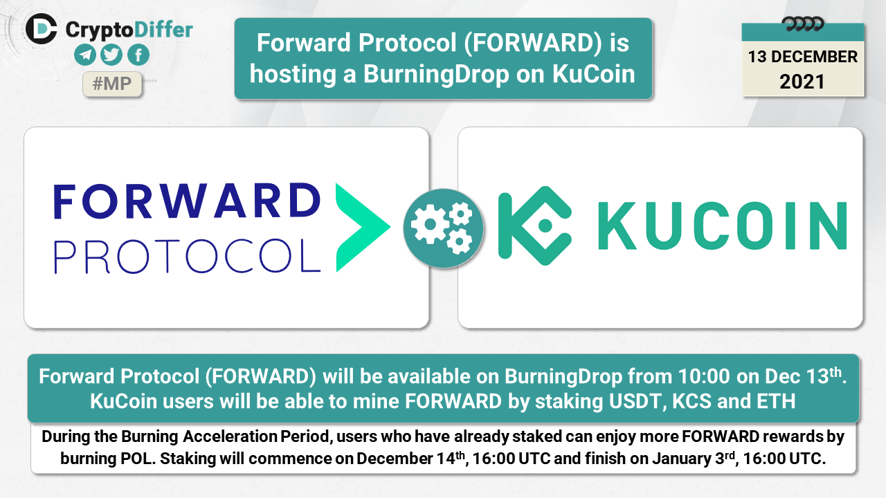 Forward Protocol (FORWARD) will be available on BurningDrop from 10:00 on Dec 13th. KuCoin users will be able to mine FORWARD by staking USDT, KCS and ETH.