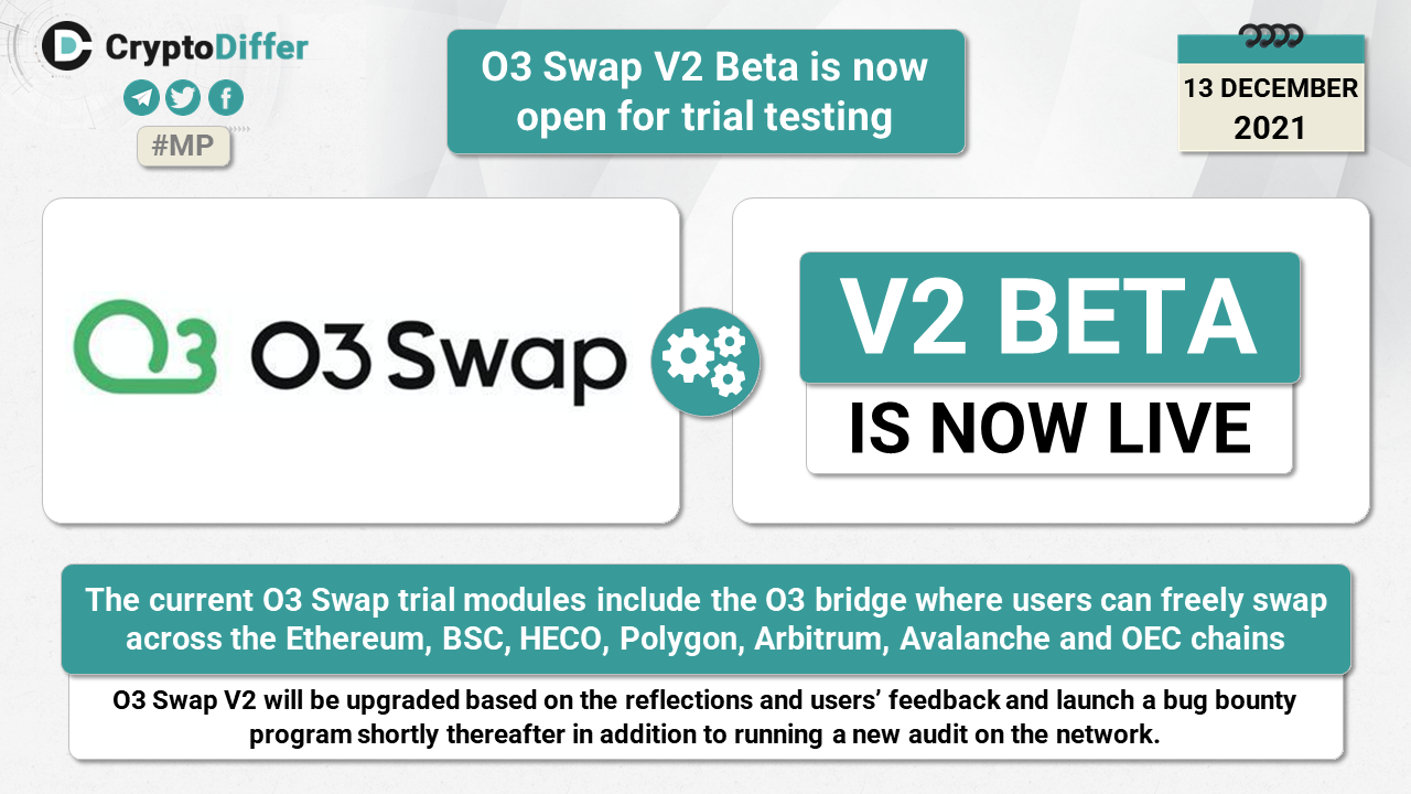 The current O3 Swap trial modules include the O3 bridge where users can freely swap across the Ethereum, BSC, HECO, Polygon, Arbitrum, Avalanche and OEC chains.