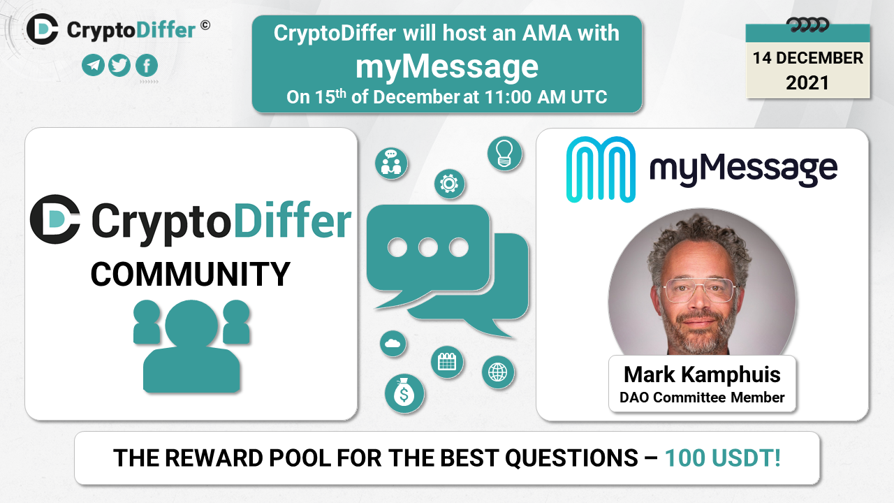 βββοΈDear community, CryptoDiffer will hold an AMA with myMessage on the 15th of December at 11:00 AM UTC in the CryptoDiffer Telegram Chat!