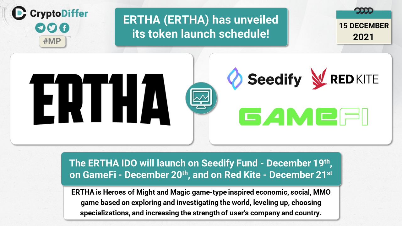 The ERTHA IDO will launch on Seedify Fund - December 19th, on GameFi - December 20th, and on Red Kite - December 21st.