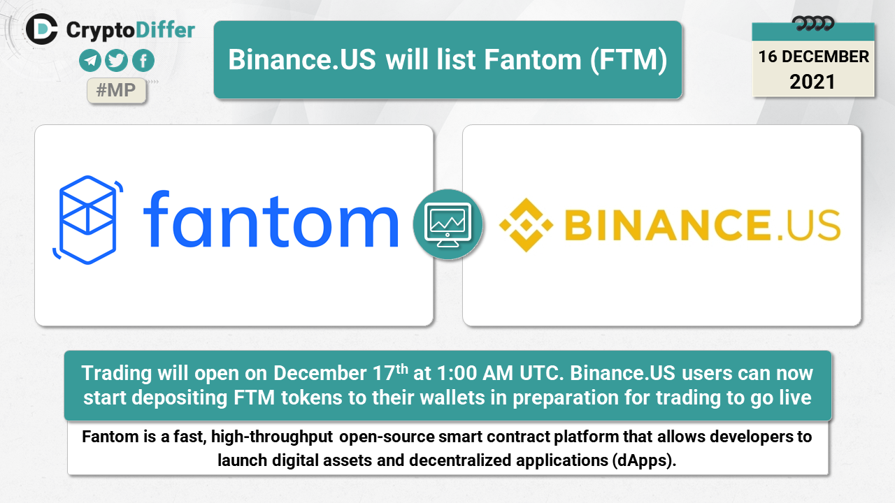 Trading will open on December 17th at 1:00 AM UTC. BinanceUS users can now start depositing FTM tokens to their wallets in preparation for trading to go live.