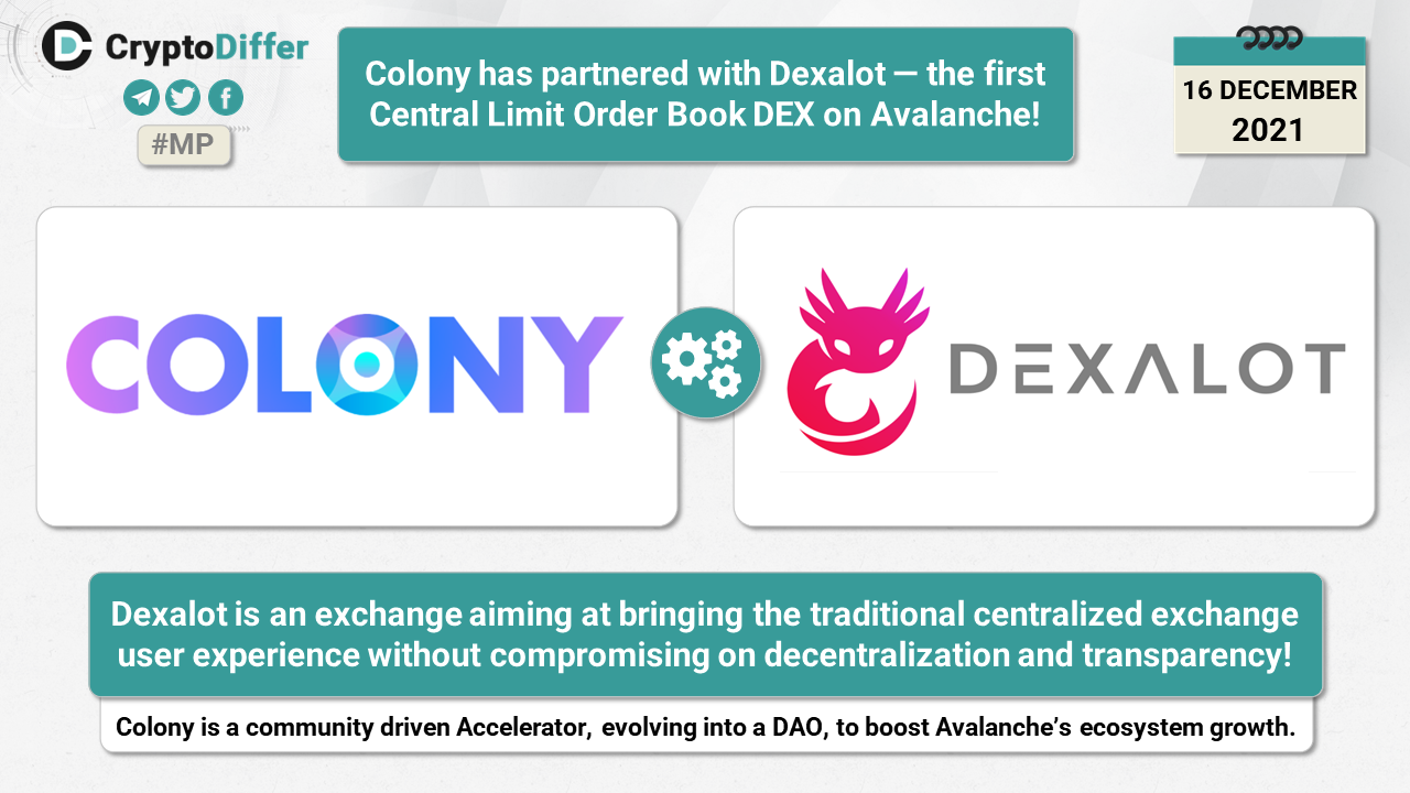 ββColony has partnered with Dexalot β the first Central Limit Order Book DEX on Avalanche!