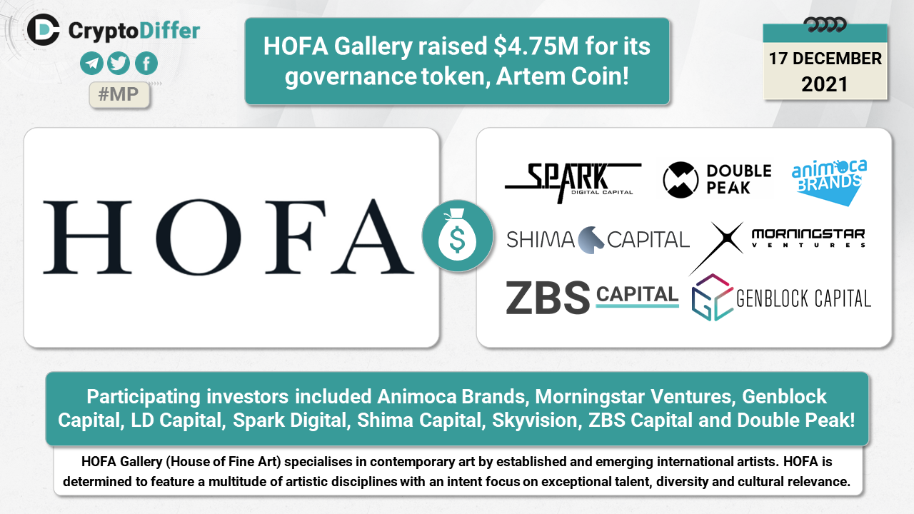 ββHOFA Gallery raised $4.75M for its governance token, Artem Coin!