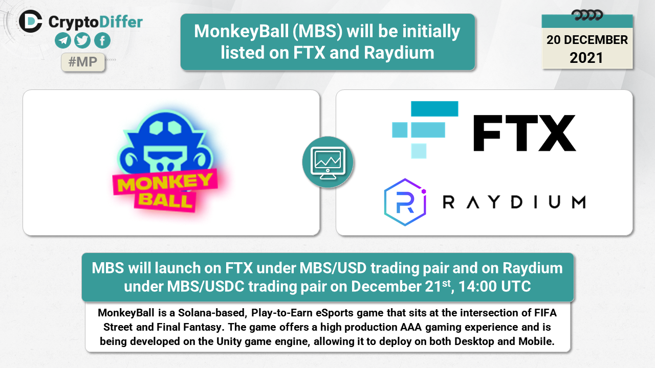 ββMonkeyBall (MBS) will be initially listed on FTX and Raydium