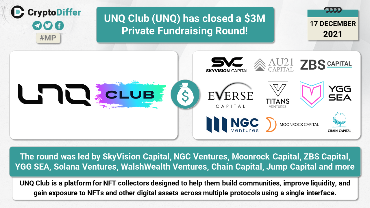 ββUNQ Club (UNQ) has closed a $3M Private Fundraising Round!