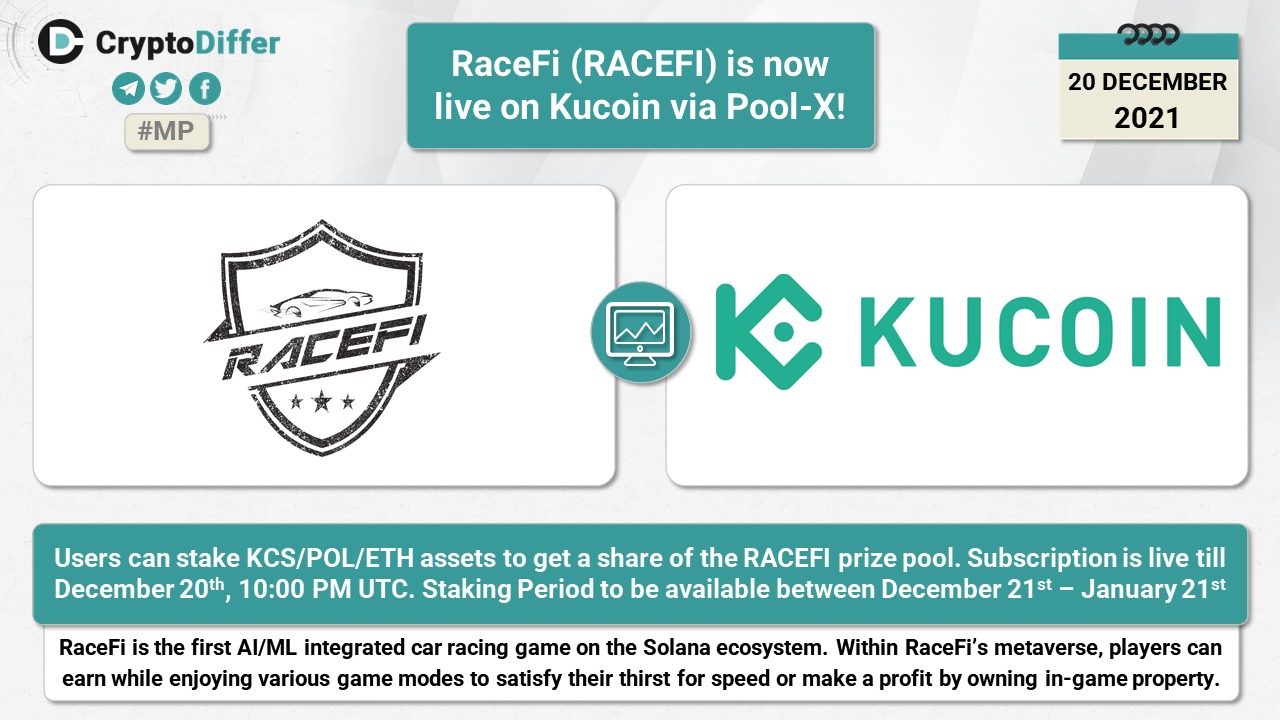 RaceFi (RACEFI) is now live on Kucoin via Pool-X!