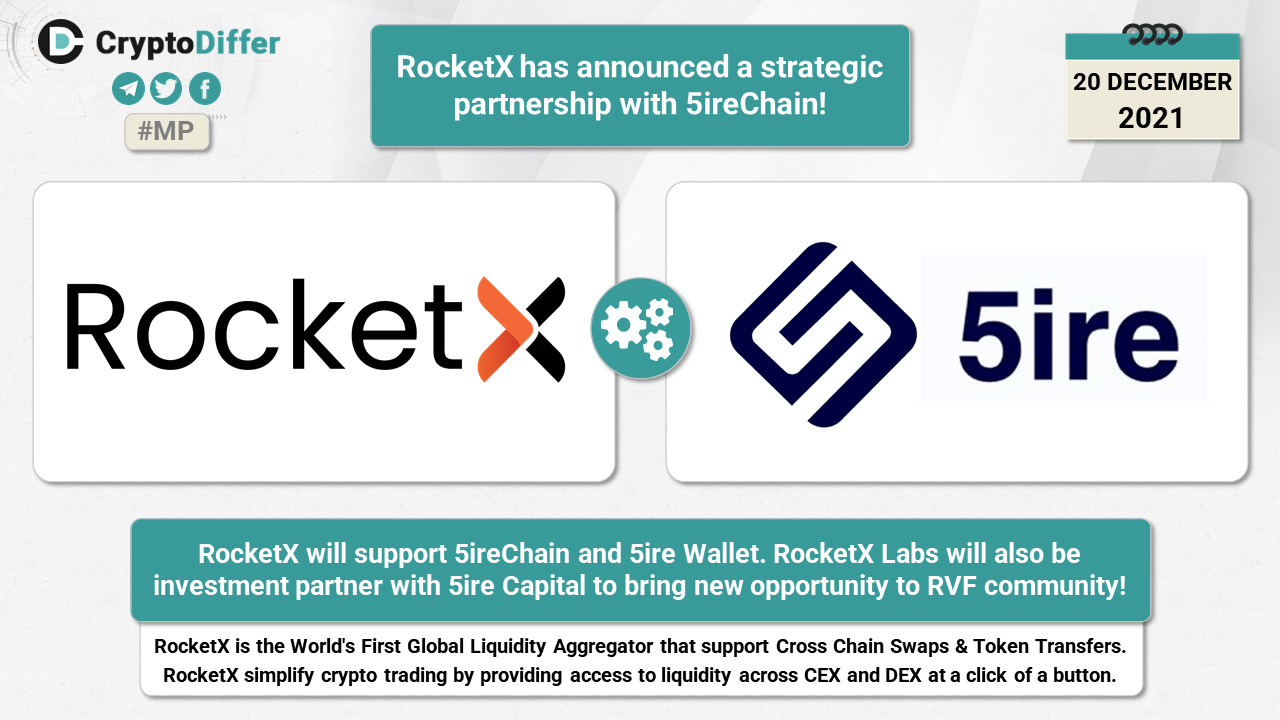 RocketX will support 5ireChain and 5ire Wallet. RocketX Labs will also be investment partner with 5ire Capital to bring new opportunity to RVF community.
