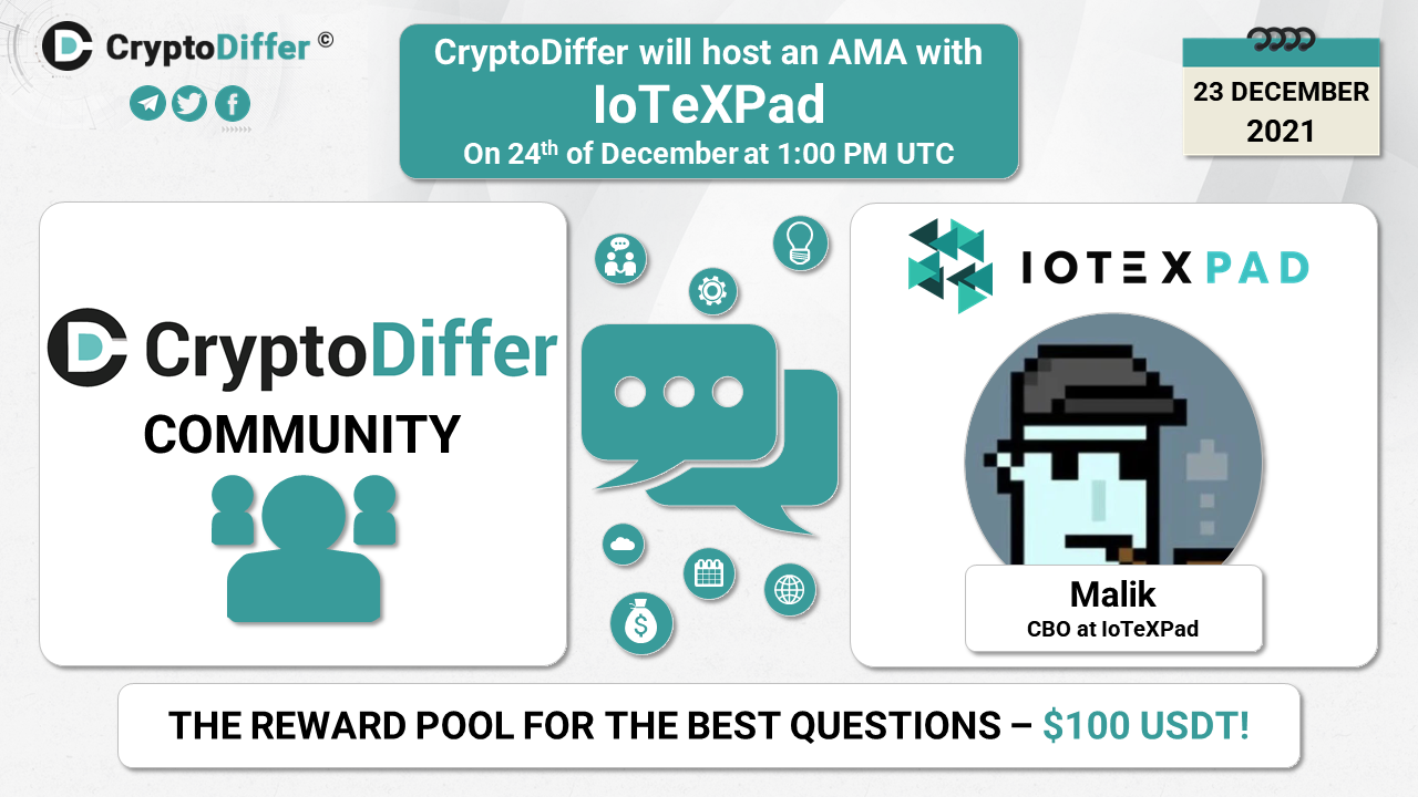 ❗️Dear community, CryptoDiffer will hold an AMA with IoTeXPad on the 24th of December at 1:00 PM UTC in the CryptoDiffer Telegram Chat!