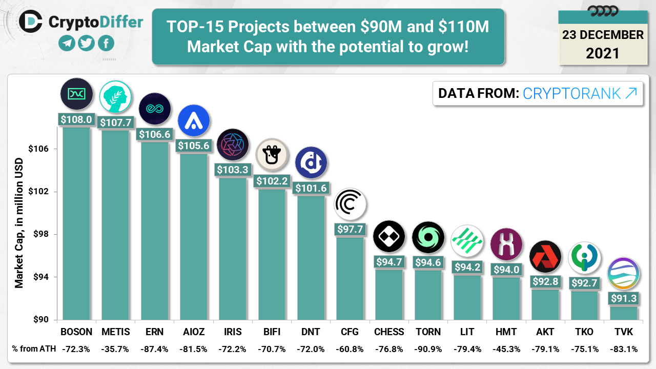 TOP-15 Projects between $90M and $110M Market Cap with the potential to grow!