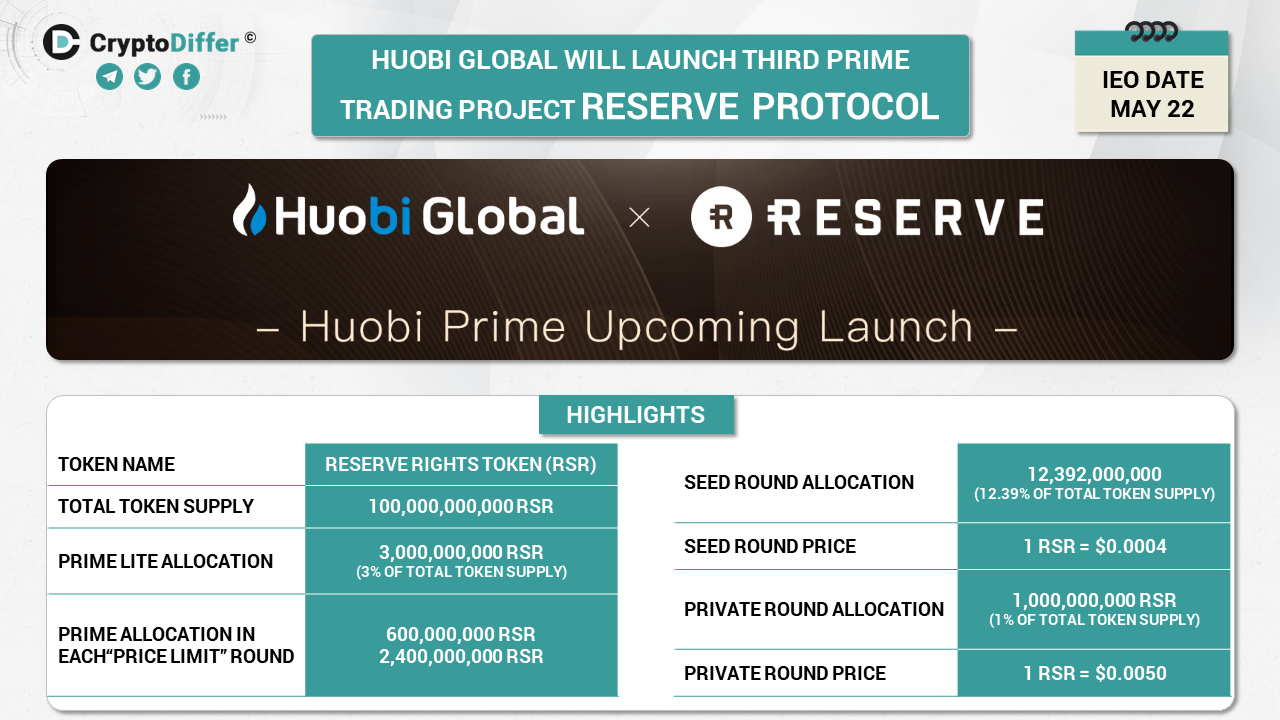 Huobi Global will launch third Prime Trading Project: RESERVE PROTOCOL on May 22, 2019
